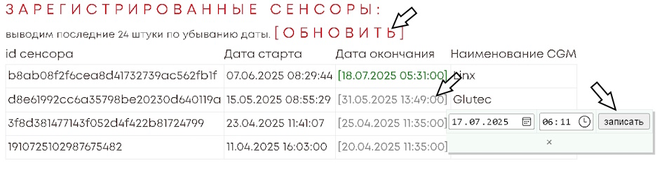 Например, если Ваш сенсор, по каким то причинам отработал раньше срока, нужно изменить дату окончания, чтоб система не запрашивала с него данные, а обращалась только к тому который действительно рабочий!
